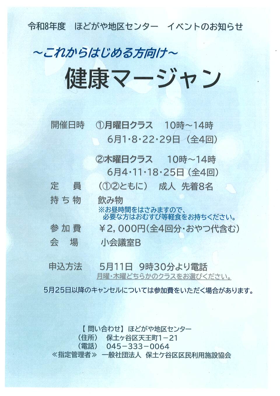 令和8年4月1日より、当施設の利用料金を改定させていただきます。Copyright(C) ほどがや地区センター All Rights Reserved.